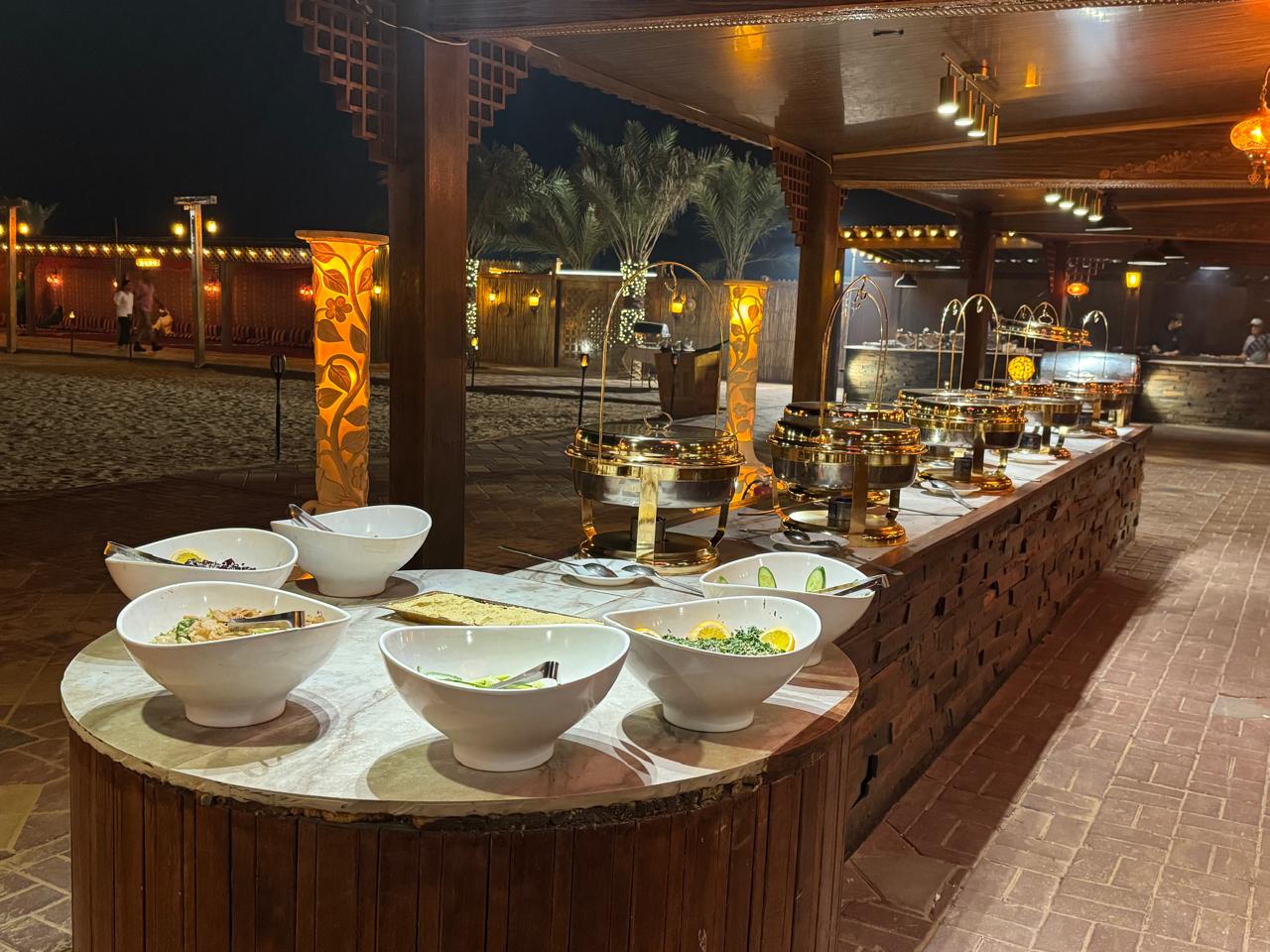Be captivated by cultural performances including belly dancing, Tanoura shows, and fire acts, creating an evening of unforgettable Arabian hospitality.