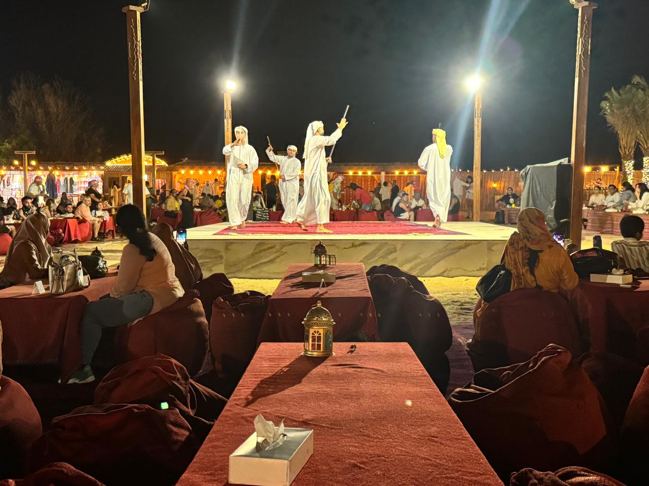 Be captivated by cultural performances including belly dancing, Tanoura shows, and fire acts, creating an evening of unforgettable Arabian hospitality.